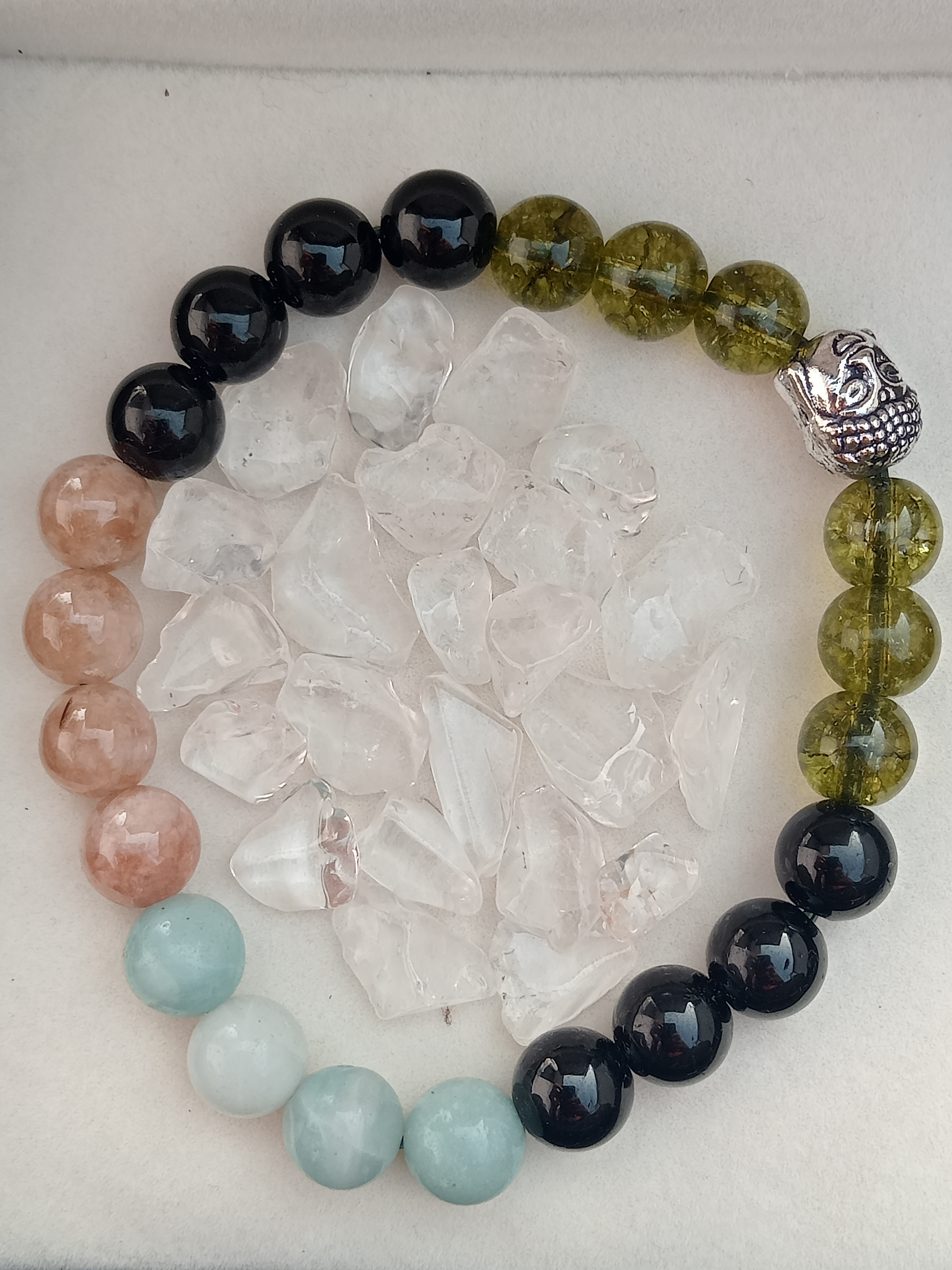 Note: To preserve the quality of your jewelry, handle it with care and avoid exposing it to harsh conditions. Refrain from wearing it in extreme temperatures, and shield it from sharp blows and scratches. Be sure to regularly cleanse your crystals to maintain their energy.