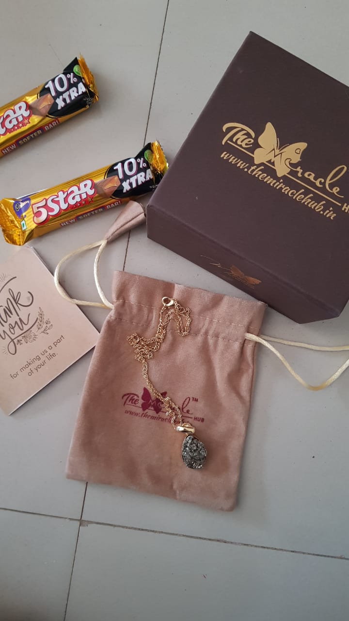 Apart from being a great daily wear accessory, the fashionable, super stylish Pyrite crystal pendant is a money magnet. The pendant is unisex, i.e, for men & women. The crystal is polished and charged to maximise the power of pyrite and be beneficial to the wearer. Pyrite has a connection to the solar plexus chakra and is used to increase strength, energy, willpower, and confidence. It's also a wonderful abundance stone, encouraging wealth, prosperity, and success.